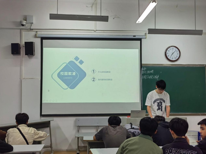 2023年10月28日为了加强校园安全教育,提高学生们的法制观念,营造和谐温馨的校园氛围,陇海书院积极开展了防范校园欺凌的主题班会。