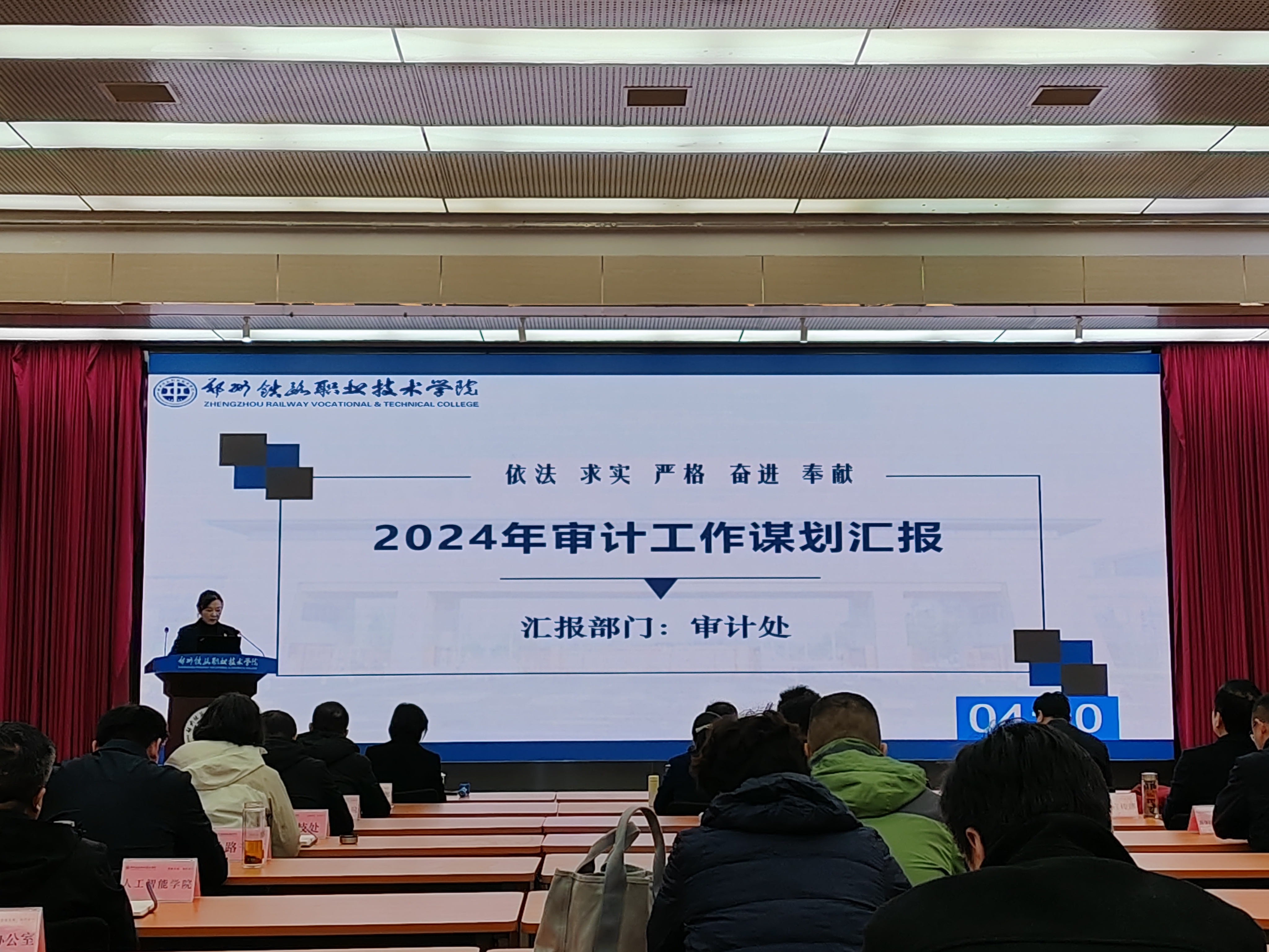 会上,审计处处长韩爽代表审计处对新学年学校审计工作谋划作了简要汇报。汇报内容分工作思路、工作展望、拟取得的标志性成果三个方面,首先,以“两个引领、两大目标、四个聚焦”为审计指导思想,围绕学校年度党政工作要点和关键环节,继续加强党风廉政建设,开展学校专项审计,推进审计整改和结果运用,不断提升审计质量;其次,围绕本年度九项重点任务,整体规划审计工作蓝图,专项突破重审计细节;最后,计划实现十项标志性成果,交出高质量的审计成绩单。