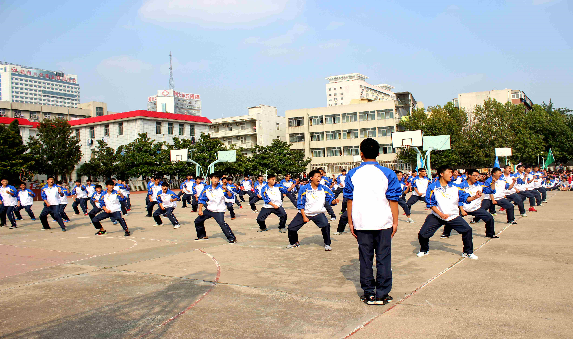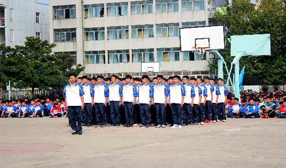 此次会操仪式由老校区七个院系参加,我院作为第三个代表队参加检阅。我院代表方队由56名男生组成,表演内容为军体拳。56名男生气势恢宏,一声“杀”由集合队形迅速变为体操队形,开场赢得其他院系的阵阵掌声。他们表演的军体拳动作到位,一气呵成,校领导及其他院系的观众对我院的表演给予一致好评,在观众的喝彩声中我院方队有序退场。军训汇报之后接着进行开学典礼仪式,学生代表、教师代表及校长进行讲话,对新生的到来表示热烈的欢迎,校长并对新生提出了殷切期望。