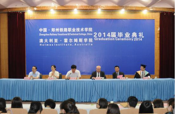 会后,国教学院2014届毕业典礼在我校第一学术报告厅隆重举行。澳大利亚霍尔姆斯学院院长斯蒂芬·纳格先生,教学总监杰弗里·罗森先生,董事孙毅先生,我校党委副书记、纪委书记谢乾、副校长付莉、副校长董黎生,以及教学管理部门和相关院系的领导、中外教师代表出席典礼。毕业典礼在庄严的中华人民共和国国歌声中开始,双方校领导分别致辞,鼓励毕业生树立远大志向,努力工作,实现人生价值,做社会的栋梁之材;中外教师代表分别发言,向毕业生表达了良好的祝愿和殷切的期望;学生代表在发言中感谢母校的教育培养,立志为祖国伟大复兴努力工作,争取早日成才,为校增光。毕业典礼仪式上,我校董黎生副校长和澳方教学总监杰弗里·罗森分别代表校方为每一位毕业生颁发毕业证书、结业证书并合影留念,毕业典礼在欢快的气氛中圆满结束。