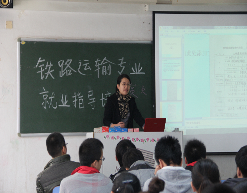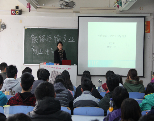 11月21日12:40,在幸福校区2301教室,辅导员杨慧娜为铁路运输专业12Y4/12Y5/12Y6三个班级共105名学生进行了一场及时的有关就业的培训。