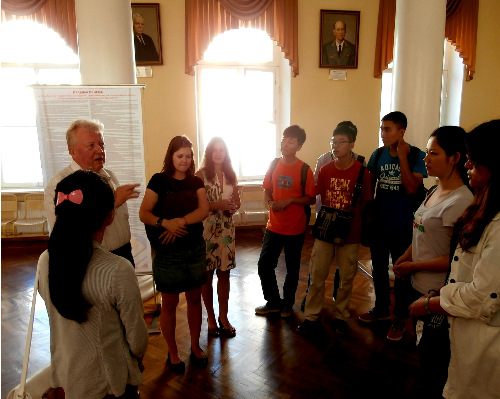 7月26日,欧亚学院师生一行14人抵达圣彼得堡,参加夏令营的开营仪式后参观圣彼得堡国立交通大学,通过陪同接待的翻译人员,学生们和圣彼得堡国立大学的校长进行了交流,圣彼得堡国立大学的校长对同学提出的问题一一做了解答,鼓励同学们学好在校课程,并且欢迎越来越多的学生到国立交通大学进行深造,校长还和同学们合影留念。