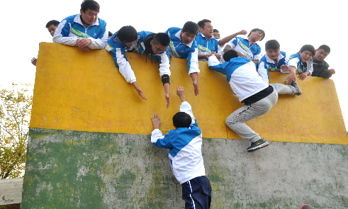 在开营仪式后,同学们进行了分组,制定了自己的队旗和口号,开始了项目训练。在“走断桥”和“信任背摔”两个项目中,同学们表现出了超越自我的能力和团队协作和信任精神。在最后一个“逃生墙”项目中,同学们仅仅用了不到八分钟的时间,就顺利地全部爬过了逃生墙,充分展现出了我们团队的团结、沟通、信任、承担和超越自我的精神。