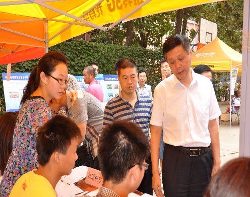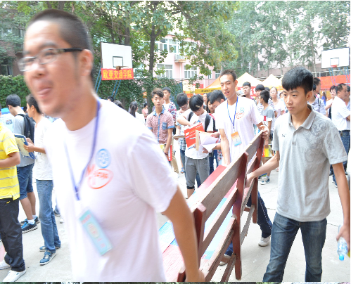 一大早欧亚系迎接新生的志愿者和学生会干部就开始忙碌了起来,今年欧亚的生源很好,所以报到注册的工作量很大,这对迎新的老师和同学是一个不小的挑战。但是欧亚系不仅在新生咨询报到前台就能使新生的队伍秩序井然,而且还专门在幸福的操场上设立了一个家长休息区,这一创新的举措赢得了不少家长的好评。而在迎新的过程中,志愿者起到了十分重要的地位,在新生注册报到时,志愿者忙前忙后,为新生和新生家长的心里带来丝丝暖意,使新生刚来报到就有一种亲切感。同时学校的领导也亲自来我系的迎接新生区域查看报到了解新生情况,这充分体现出校领导对我系的重视和关注。