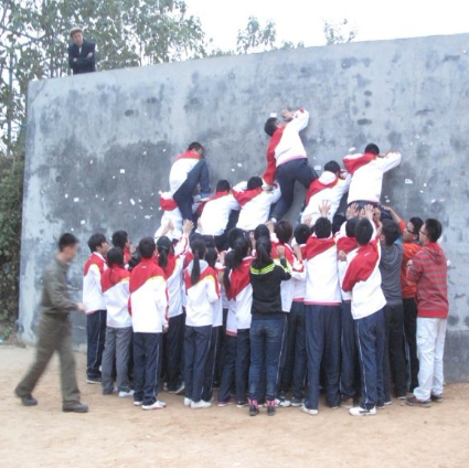 在教练的组织和引导下,同学们分成了四个分队,绘制了自己的队旗,确定了自己的队名、队训和队歌,参加了“同起同坐”、“空中断桥”、“盲人方阵”、“毕业墙”等项目的训练,经过同学们的亲身体验和教练的分享讲述。同学们在以下几个方面得到了锻炼和提升:一、学会回应和与人沟通;二、明确目标,制定分阶段任务,并坚持完成;三、培养团队意识,增强责任心;四、学会奉献,学会感恩;五、勇于挑战和超越自我。