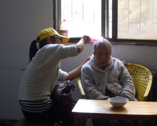 在敬老院里,志愿者们都十分积极的围在老人身边,帮爷爷奶奶们捶腿捶背。爷爷奶奶们喜欢热闹,志愿者们就给他们唱红歌唱豫剧。老人们喜欢讲自己的故事,志愿者们就认真耐心地聆听。