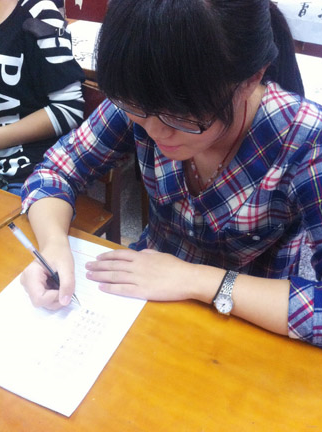 09月23日中午,一场别开生面的13级欧亚新生书法赛在康复校区104教室拉开了帷幕。