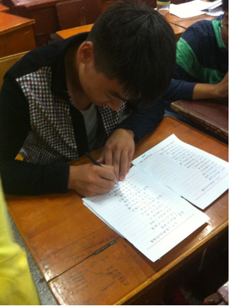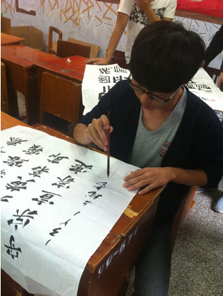 在这里相互切蹉书法技巧、展示书法才艺。本次比赛分为硬笔字和毛笔字两个组。在毛笔字比赛小组,一支支毛笔在同学们的手中轻舞飞扬、苍劲有力。同学们在宣纸上尽情的挥毫泼墨,抒发自己的豪情壮志。一份份俊丽的楷书、行书等等,作品敦和浑厚、飘逸洒脱。在钢笔字比赛小组,参赛同学全力投入,尽情挥洒。充分展示出汉字的无穷魅力。