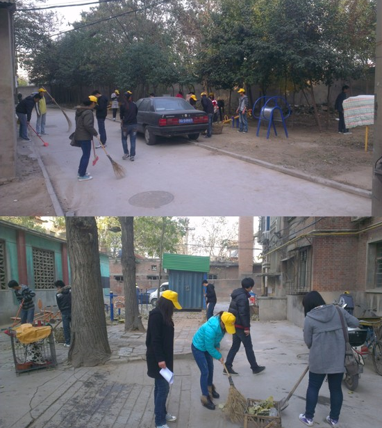2012年11月17日下午,欧亚青协志愿者们去康复社区献爱心。下午1点50分青年志愿者在康复校区门口集合前往康复社区,在社区相关负责人的安排下对社区内的落叶和枯枝义务清扫,社区里都充满着青年志愿者们忙碌的身影。大家的义务服务得到了社区人员的夸奖和赞赏。