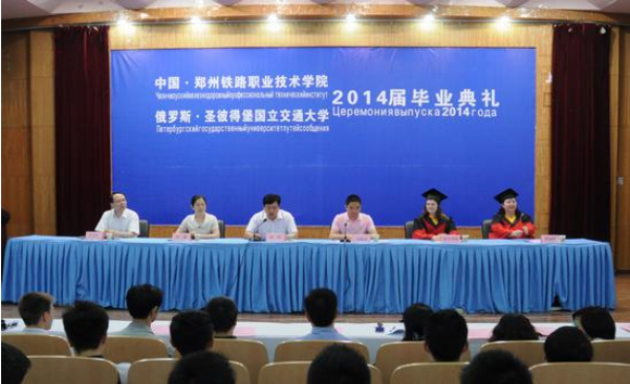 6月5日下午,欧亚交通学院2014届毕业生典礼在幸福校区一号报告厅隆重举行。我校党委副书记谢乾、副校长付莉、副校长董黎生,俄罗斯圣彼得堡国立交通大学校方代表维多利亚、教师代表拉里萨,欧亚协会会长冯耀武,学校各职能处室和合作系院的领导、中外教师和2014届全体毕业生参加了典礼。典礼由校党委副书记、纪委书记谢乾主持。