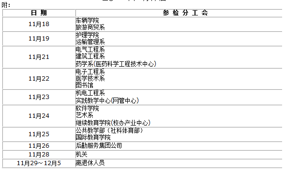 1、请全体教职工在规定时间进行体检,特殊情况不能按时体检者,请提前到学院工会登记,以便统一协调安排。