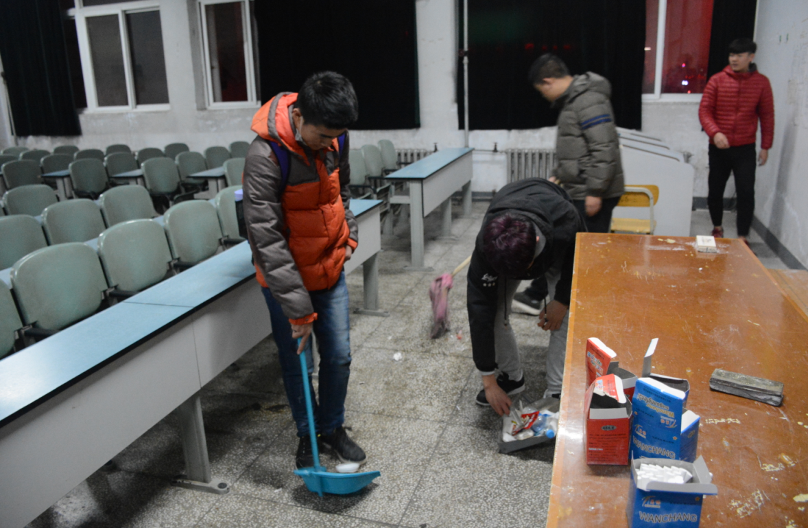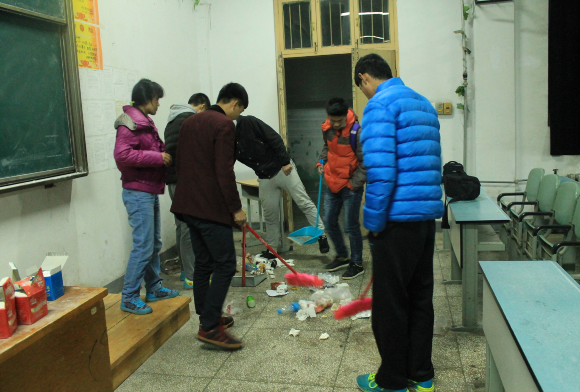 现在我院有些教室因为很多同学不注意维护教室的卫生整洁,导致教室急需打扫清洁。为了给大家创造一个良好的上课环境我院体育部组织了此次活动。大家自带扫把和簸箕,认真负责地打扫完教室。同学们热情洋溢的进行清扫活动,展现了我院学生良好的精神状态。