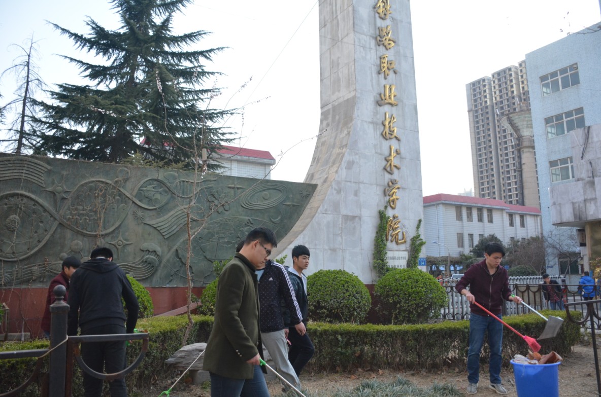 团学会干部在康复校区康南教学楼前集合,对康南教学区进行打扫。在学生会主席高锋的带领下,学生前往指定位置开始工作。同学们紧跟其后,争先恐后,全力投入,也发扬不怕苦、不怕累、不怕脏的雷锋精神对楼下的花坛、小广告、垃圾桶等比较肮脏顽固的污渍进行重点清扫。