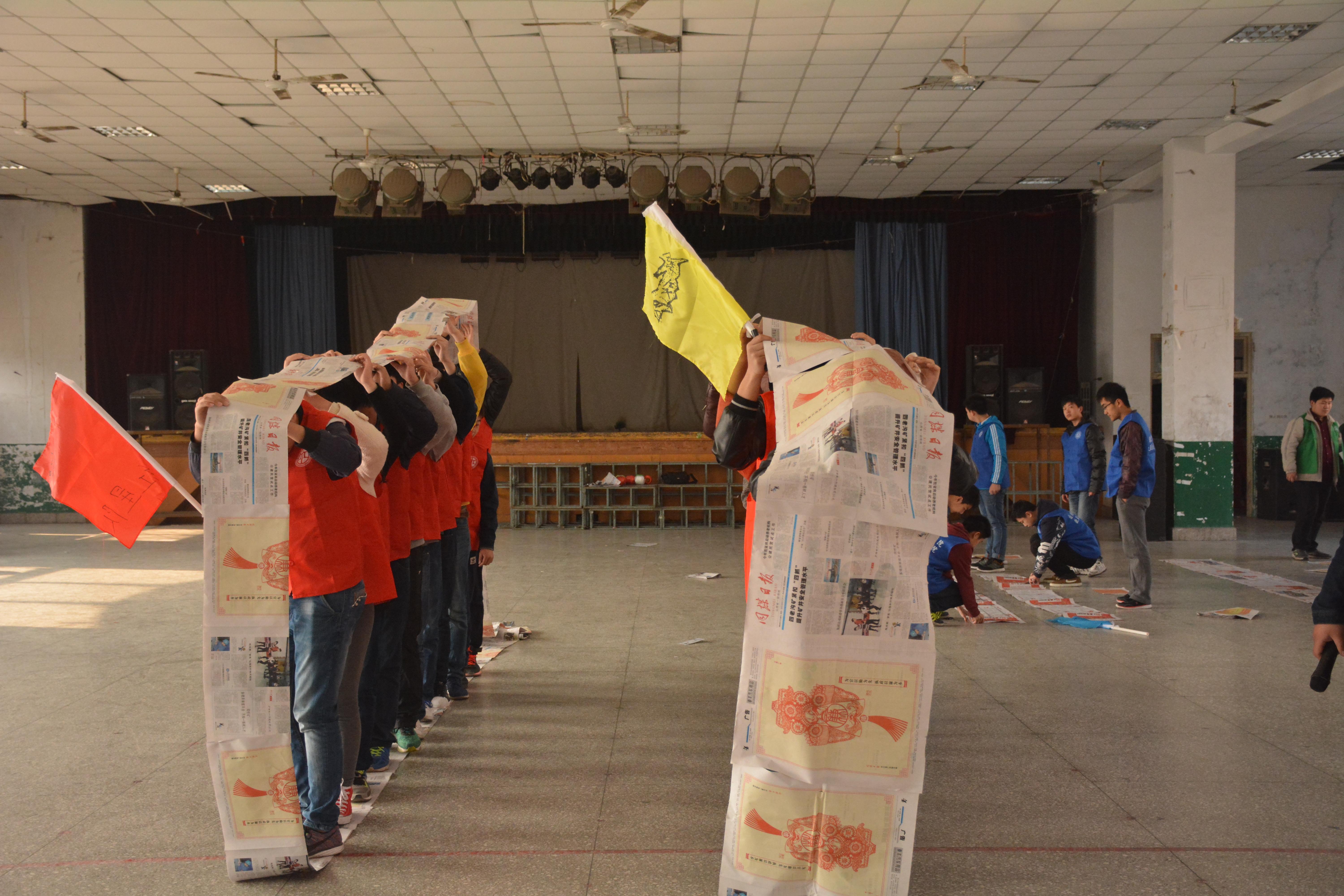 给每队分发一定数量的绳子,如何在最短时间编成一张能经受住队内任何一个人体重的网。这项运动看起来似乎很平常,其实它验证了人与人之间的交流和可信度,只有充分的相信自己,相信队友,才能毫无顾忌的躺在这张网上面去。在日常学习生活中,我们也要相信自己,相信团队的每一个成员,才能取得成功!