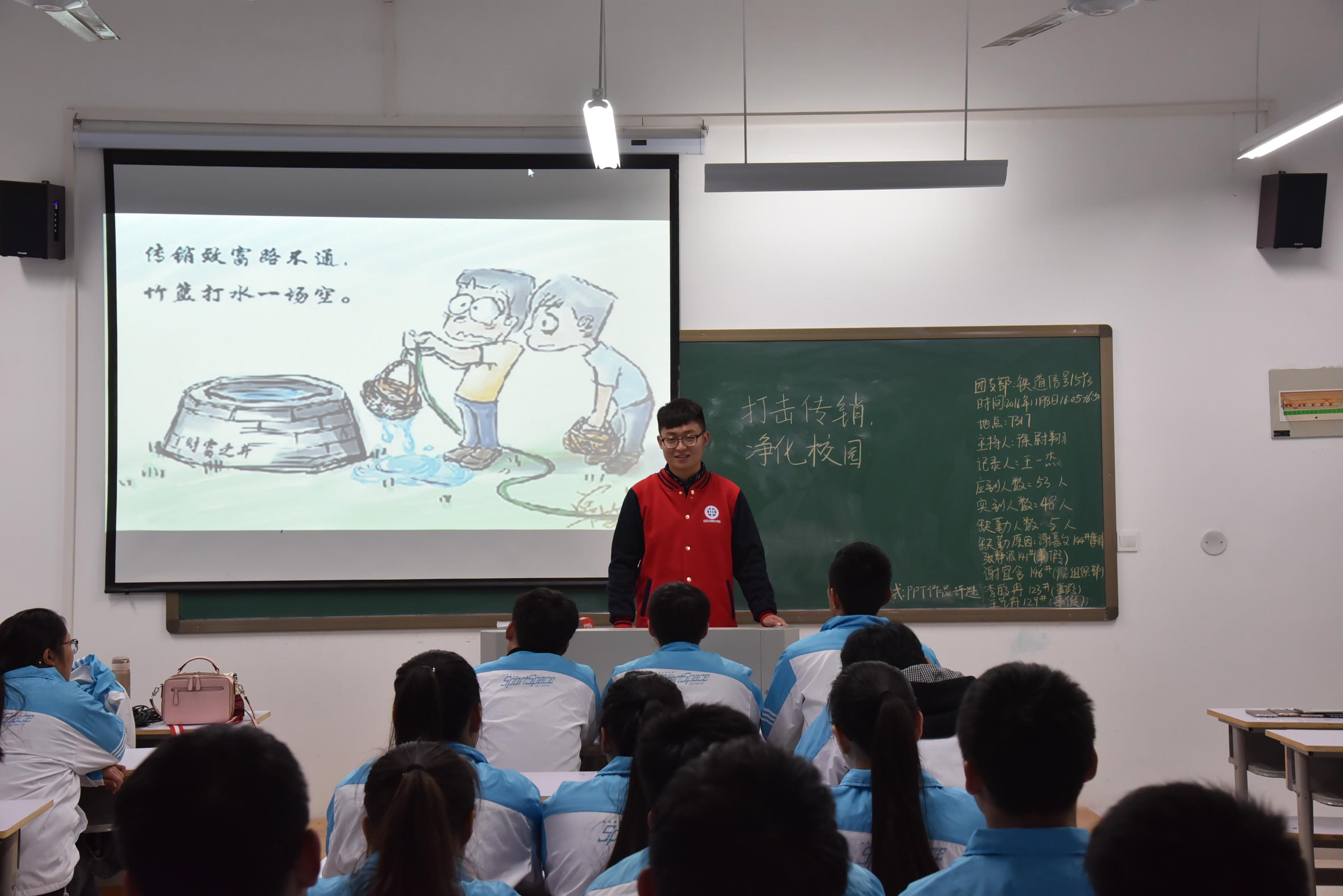 11月8日,国教(欧亚)学院举行了主题为“打击传销,净化校园”的团课活动。活动在七号楼各自班级的固定教室举行,大二全体学生参加了本次团课活动。