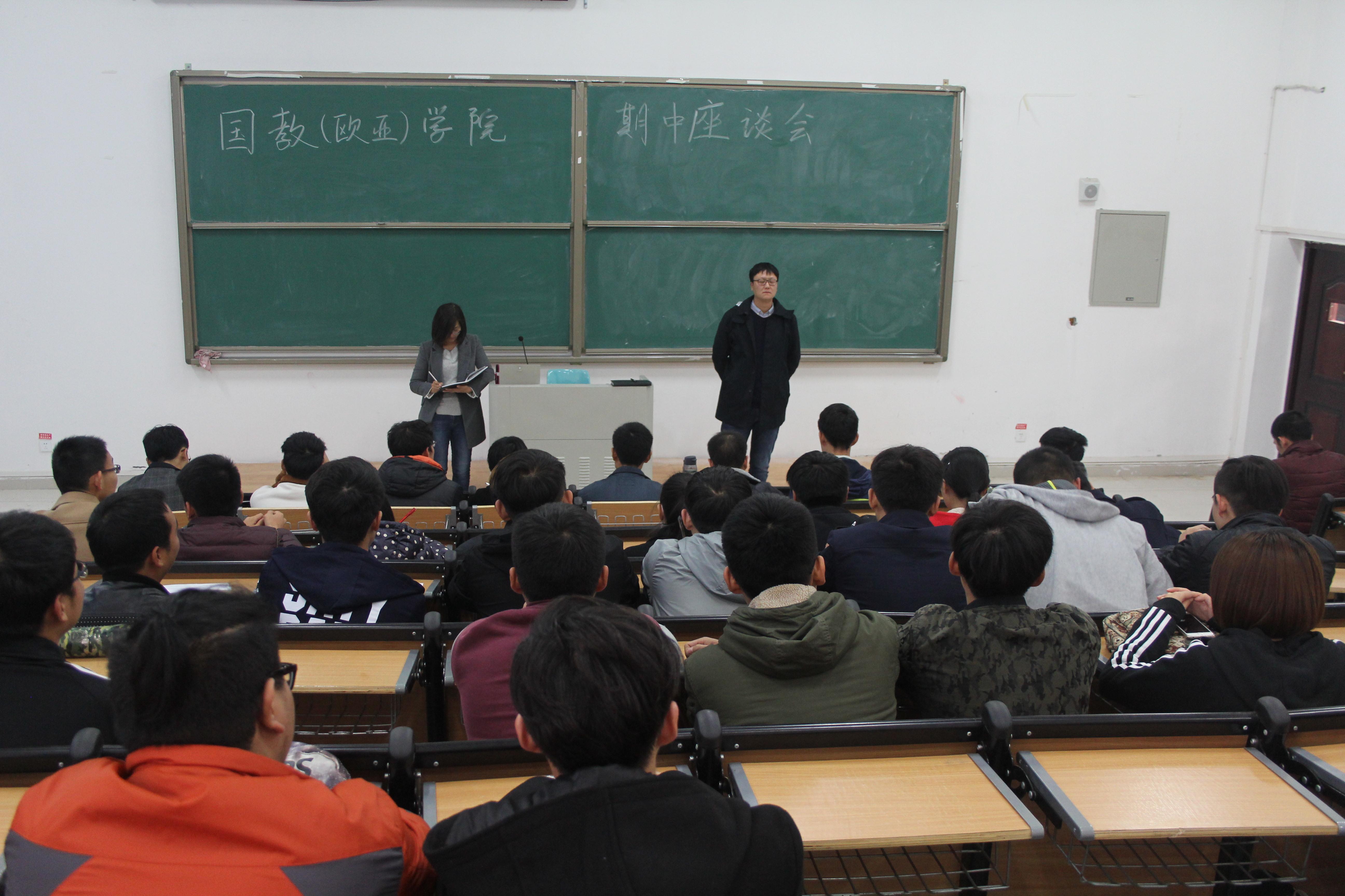 11月9、10日中午,国教(欧亚)学院在新校区7124教室召开学生代表座谈会。国教(欧亚)学院15、16级各班班干参加本次会议,我院学工办主任任冉携辅导员出席本次会议。