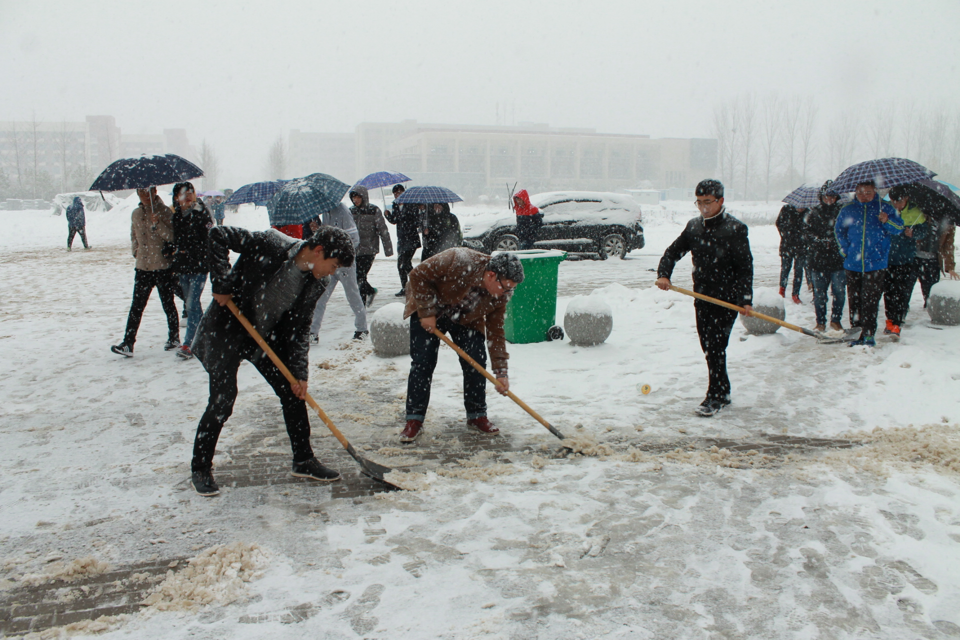 劳动开始前,负责人对成员进行分组并选出小组长,由小组长带队前往指定地点进行义务劳动。男女分开,分工明确。女生2人一组打扫教学楼,对教学楼进行清洁和打扫。男生分为两大组,一组12人中的3人对每层厕所清洁卫生,以及对宿舍外墙清洁,扫地工作,另一组由组长带领前往教学楼进行教学楼楼外积雪铲除和清理,寒风中身着校服的他们丝毫不惧寒冷,为学院默默做出贡献。