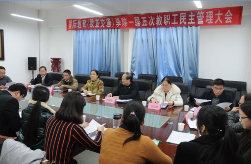 12月6日下午,国教(欧亚)学院一届五次教职工民主管理大会在新校区办公楼三楼322会议室召开,学校党委副书记工会主席付莉、工会副主席杜建伟、董忠升,女职工委员会副主任付红青应邀出席了会议,国教(欧亚)学院领导班子成员及全体教职工参加会议。大会由国教(欧亚)学院分工会主持。