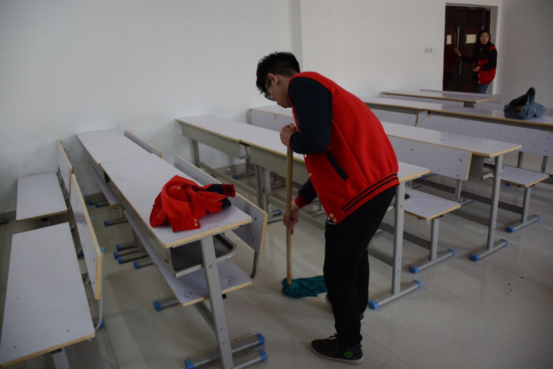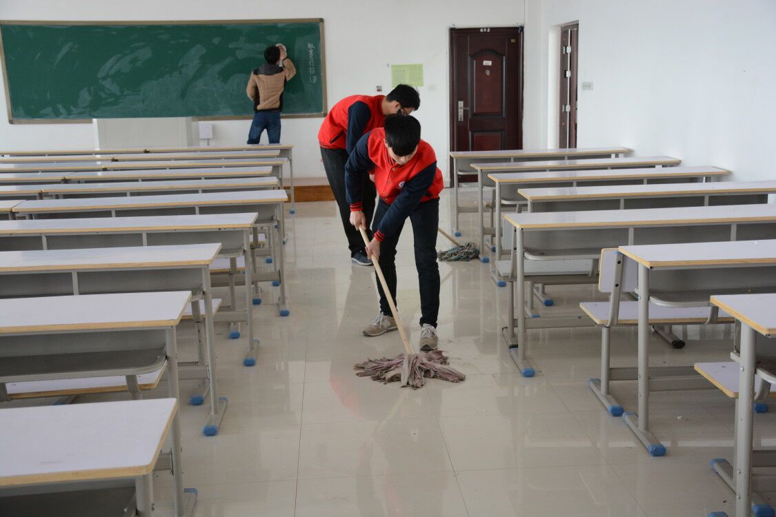 党校学员与积极分子积极投入教室环境卫生的清扫中,对7号教学楼教室,门窗、暖气片、黑板、墙角等处进行了清扫,为营造良好教室环境贡献自己的一份力。经过学生党员们的辛勤劳动,教室卫生环境焕然一新。