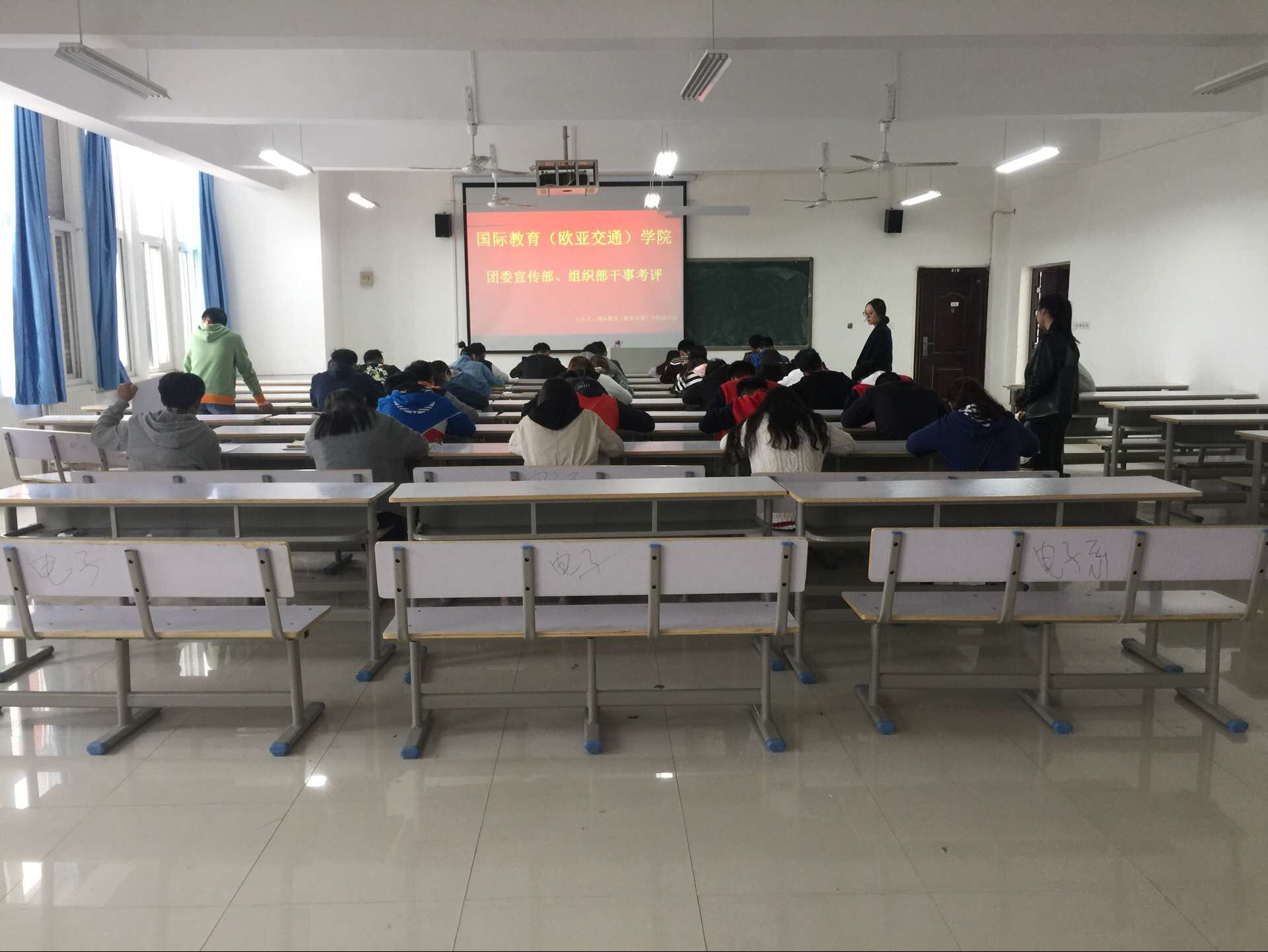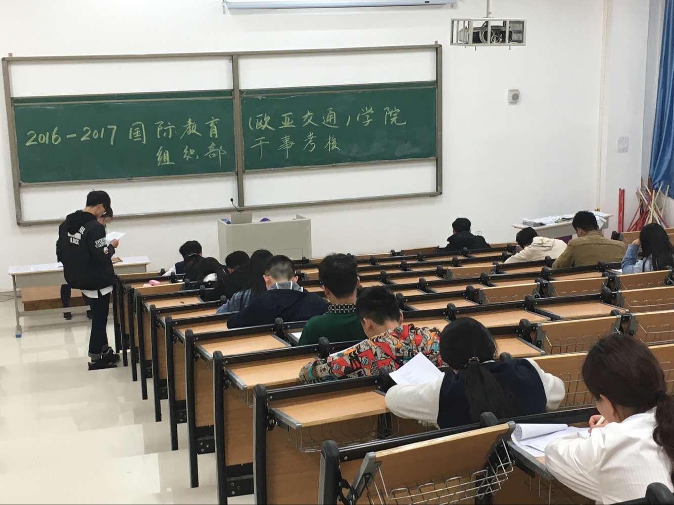 4月11日,国教(欧亚)学院组织宣传部和组织部,面向各部门大一干事在七号教学楼进行了部门技能考核。
