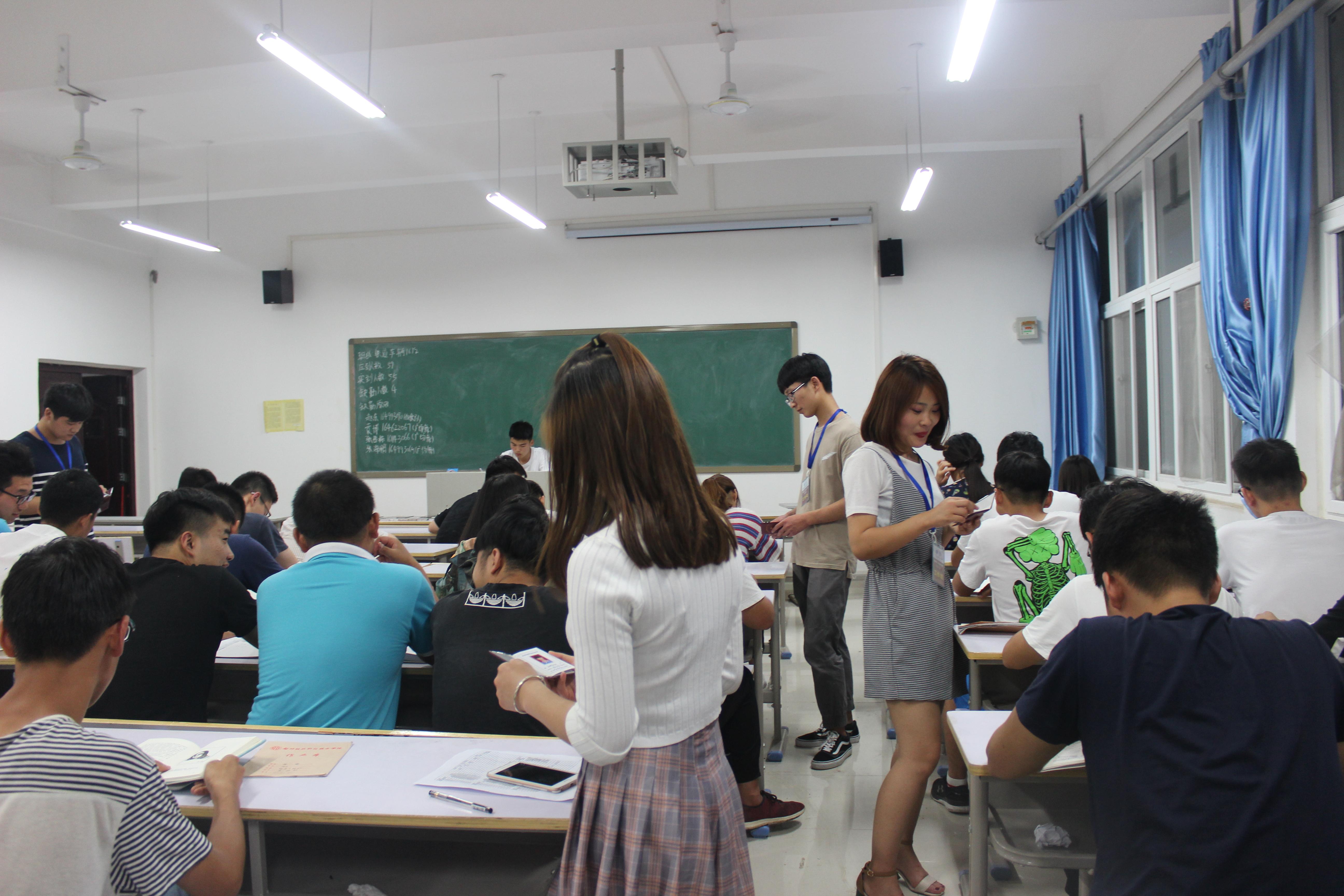 521日晚,为迎接学习月国教(欧亚)学院班会上对大一各班迟到、考勤、代课等情况进行拉网式逐一排查,并且在各个大一班级安排驻班代表,班会之前各个班级驻班代表对所驻班级学生一一排查确保无代课情况。