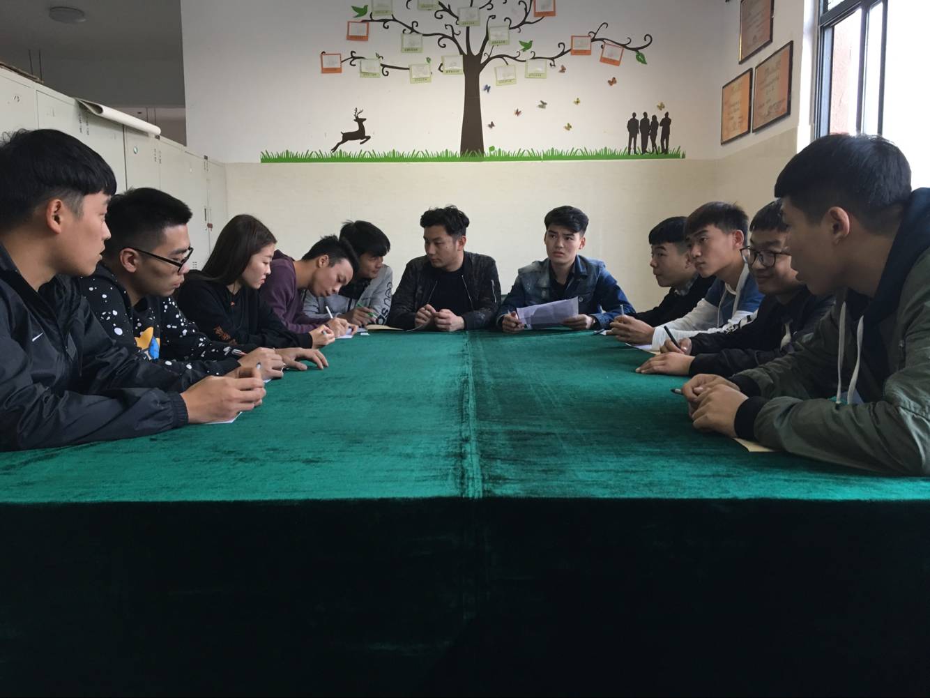 为了加深同学们对半军事化内务整理的了解,以及规范寝室管理,营造整洁舒适的生活环境,培养学生良好的生活习惯。在罗书记的组织下,国际教育(欧亚交通)学院于2017年10月12日在辅导办进行宿舍内务规范商讨会,学生代表以及宿管部,女工部参与本次会议,各位学生代表深入学生宿舍,对内务整理的规范进行了商讨。