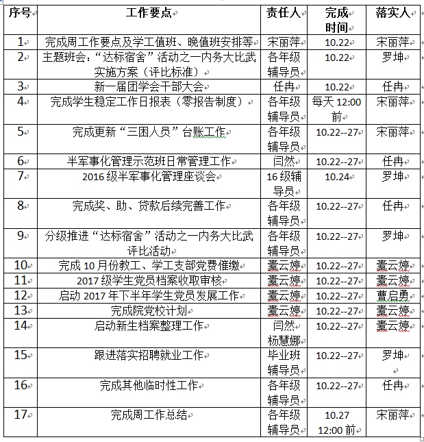 国际教育(欧亚交通)学院2017-2018学年第一学期学生工作第八周工作要点