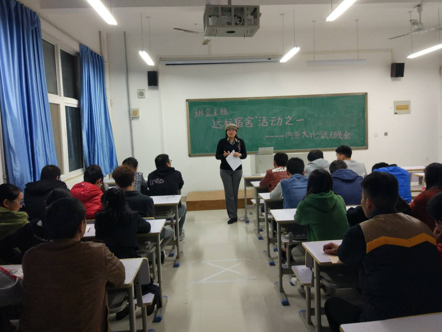 物流管理15级积极响应我院开展“‘达标宿舍’活动,以实际行动向十九大献礼”的号召,于2017年10月22日周日晚班会时间召开了主题为“‘达标宿舍’活动之内务大比武动员会”,及时开展了内务整理动员大会,并在辅导员老师宋丽萍的指导下积极开展内务整理。