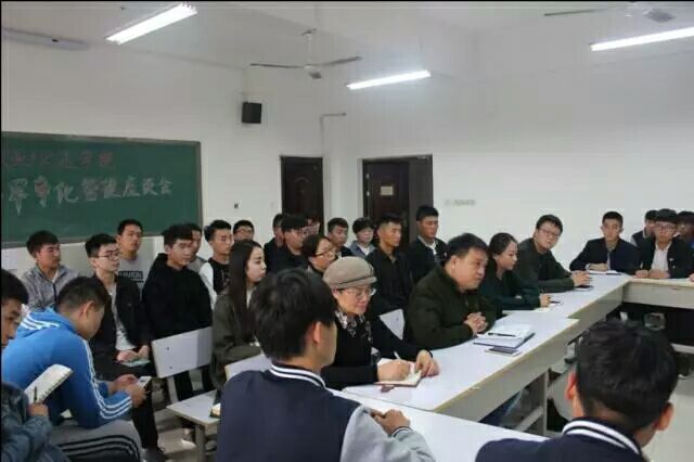 10月24日下午3点10分国际教育(欧亚交通)学院半军事化管理座谈会在7212教室举行。党总支副书记罗坤、宋丽萍,学工办主任任冉及部分辅导员出席了本次座谈会。当然还少不了大一及大二的各班骨干,大家一起商讨我系半军事化管理的发展大计。