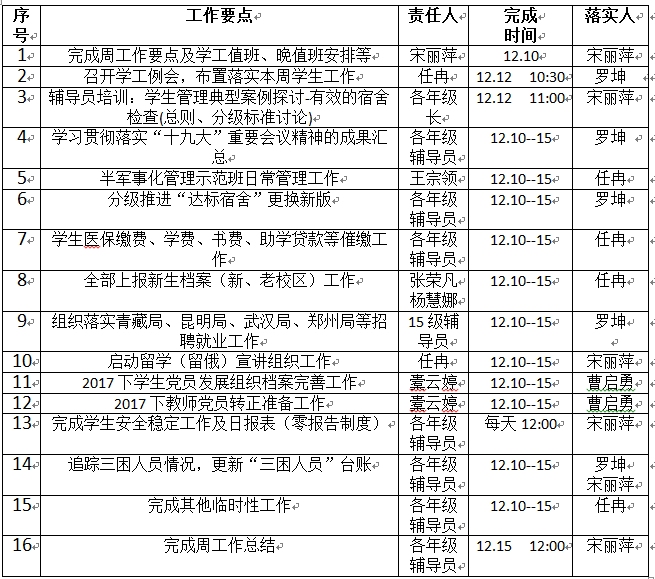 国际教育(欧亚交通)学院2017-2018学年第一学期学生工作第十五周工作要点