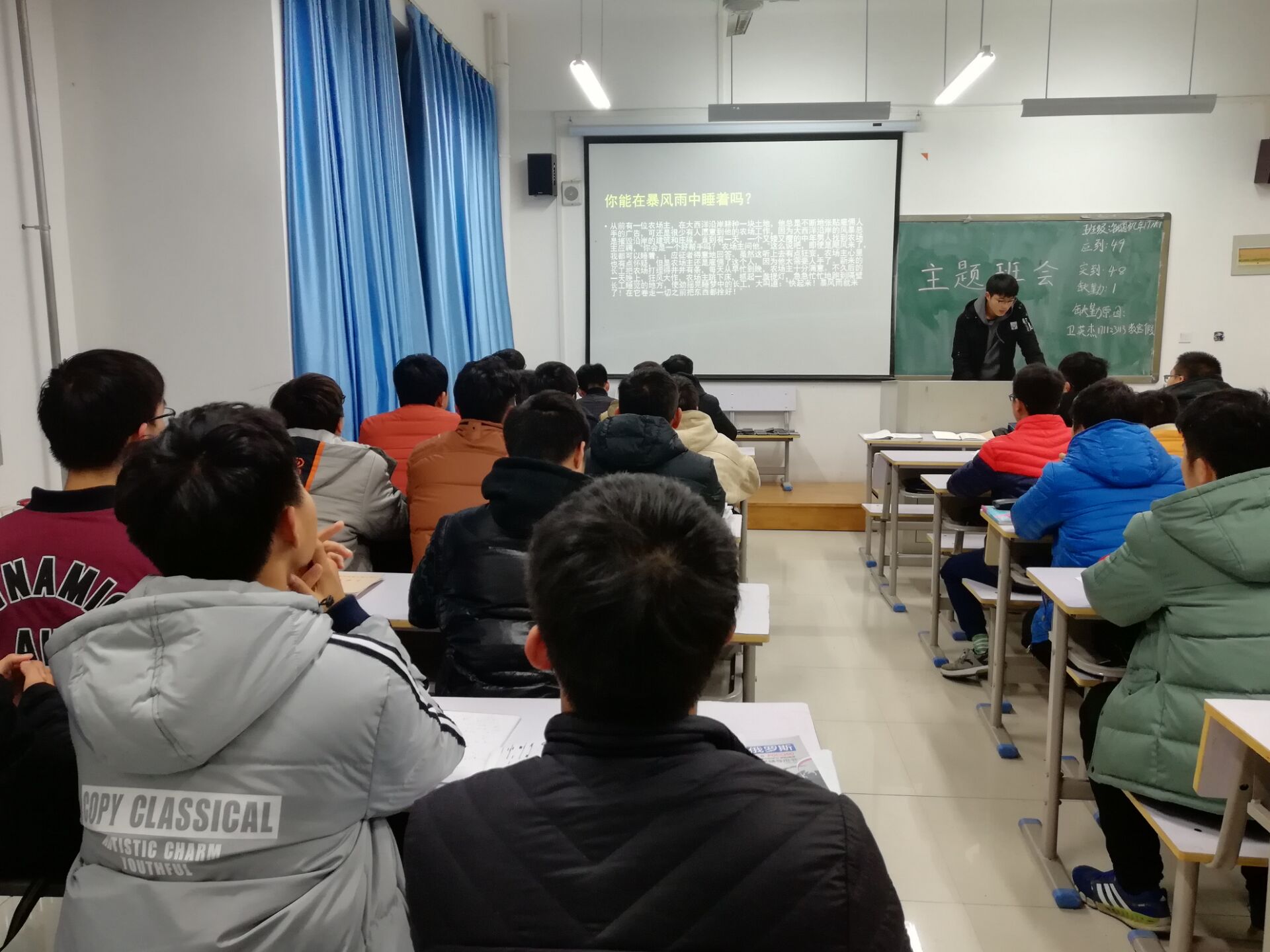 2017年12月12日晚18:00开始,我系半军事化管理示范班分别召开期末复习动员主题班会,班会主题为“期末复习我在行,决胜四十天,消灭不及格”,辅导员王宗领老师分别参加各班班会。