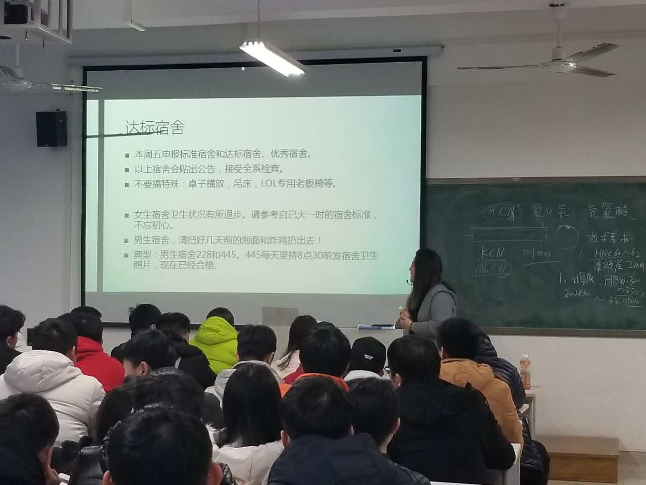 最后,唐昱老师还向同学们详细解释了我系对“达标宿舍”的相关要求和实施方案,强调了养成教育的重要性。班会整体氛围活跃而不失纪律性,在同学们的掌声中,圆满结束本次期末考试复习动员主题班会。