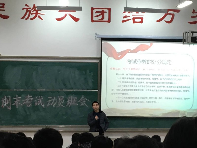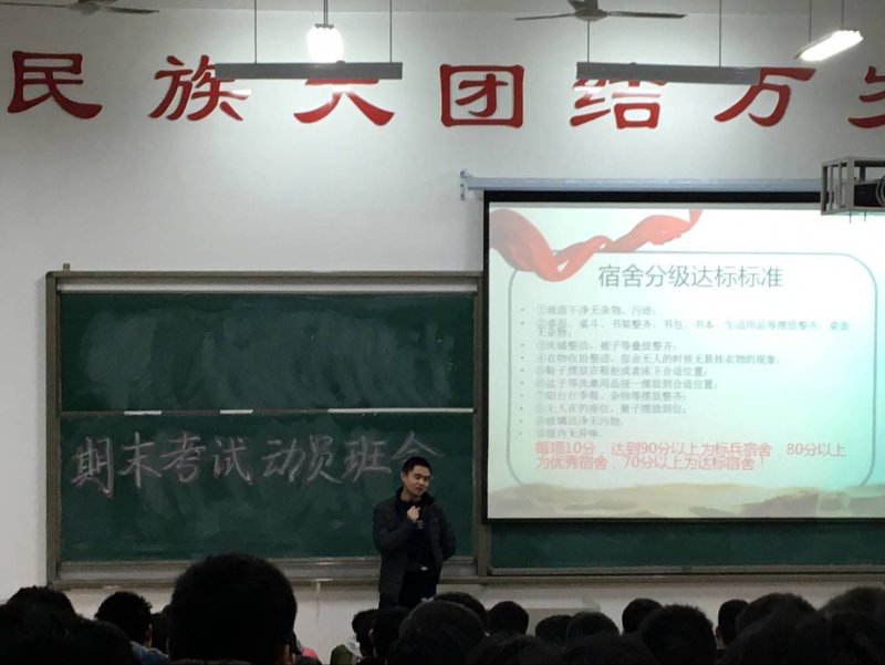 2018年1月10日晚18:00,国际教育(欧亚交通)学院高铁工程17M1班、17M2班、铁道车辆17Y1班、17Y2班在7321召开期末工作主题班会,辅导员王宗领老师就“如何做好期末复习、规范考试纪律、注意期末—寒假—路途安全、半军事化管理总结”为各位同学一一讲解。