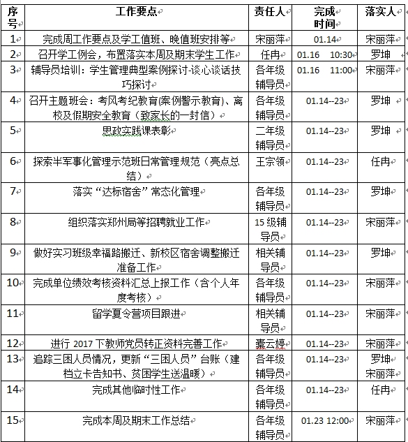 国际教育(欧亚交通)学院2017-2018学年第一学期学生工作第二十周及期末工作要点