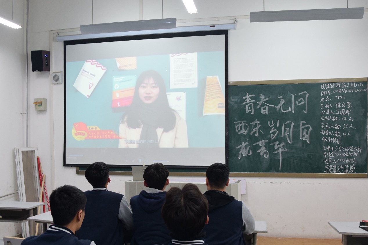 政治学习首先开始,本次以演讲的形式开展学习两会精神了解中国的良好现状及不足,从而百倍的信心和千倍的努力来践行誓言实现梦想传递中国信心。为了让我们更加努力去传递中国信心,以“青春无问西东岁月自成芳华”为主题的团课在第二节以视频的形式开展,为我们进一步的解释了我们如何去发展提升自我。