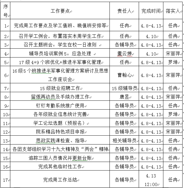 国际教育(欧亚交通)学院2017-2018学年第二学期学生工作第六周工作要点