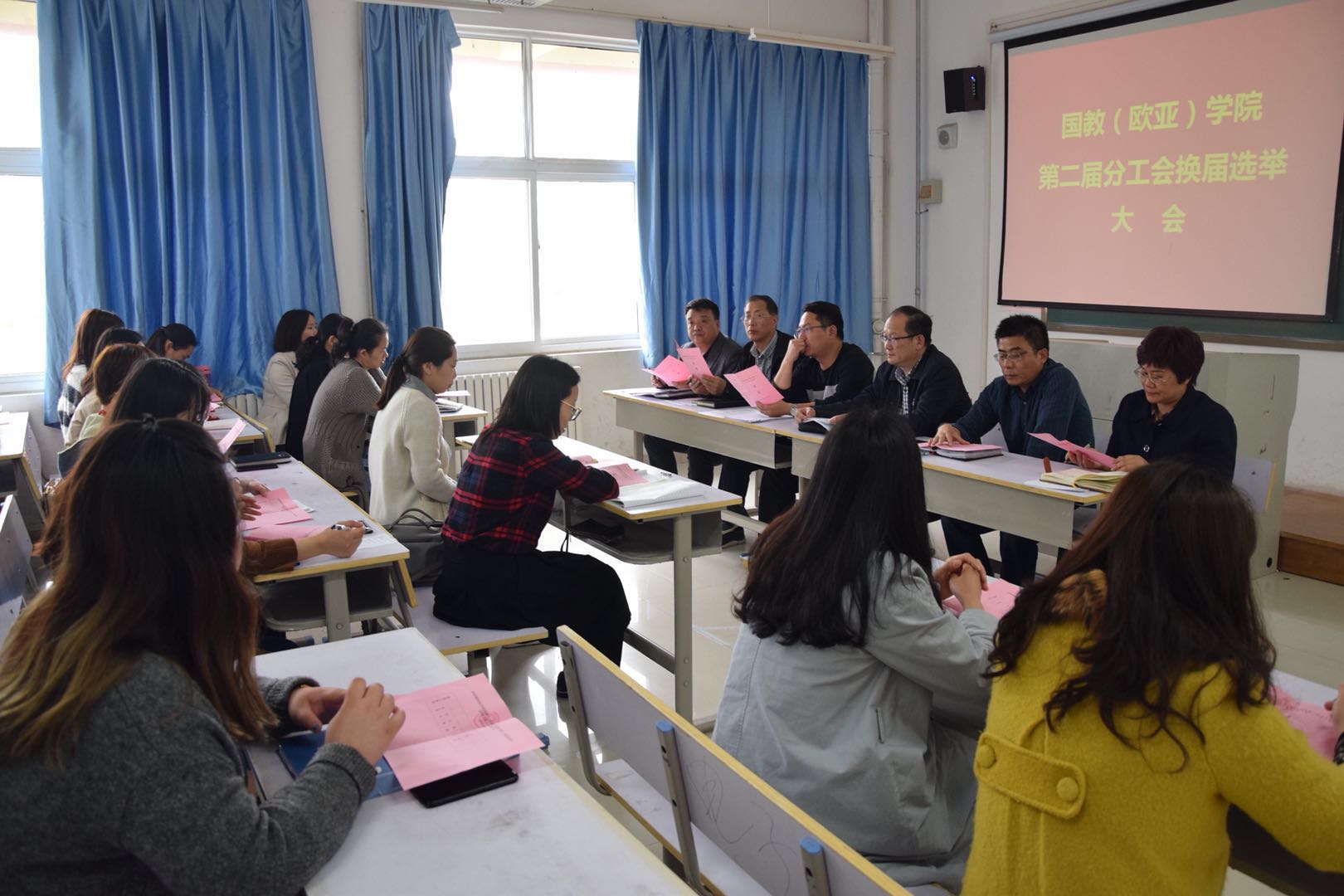 4月24日下午,国教(欧亚)学院第二届工会委员会换届选举大会在7214举行。校工会副主席杜建伟,系领导班子和全体工会会员参加了会议。