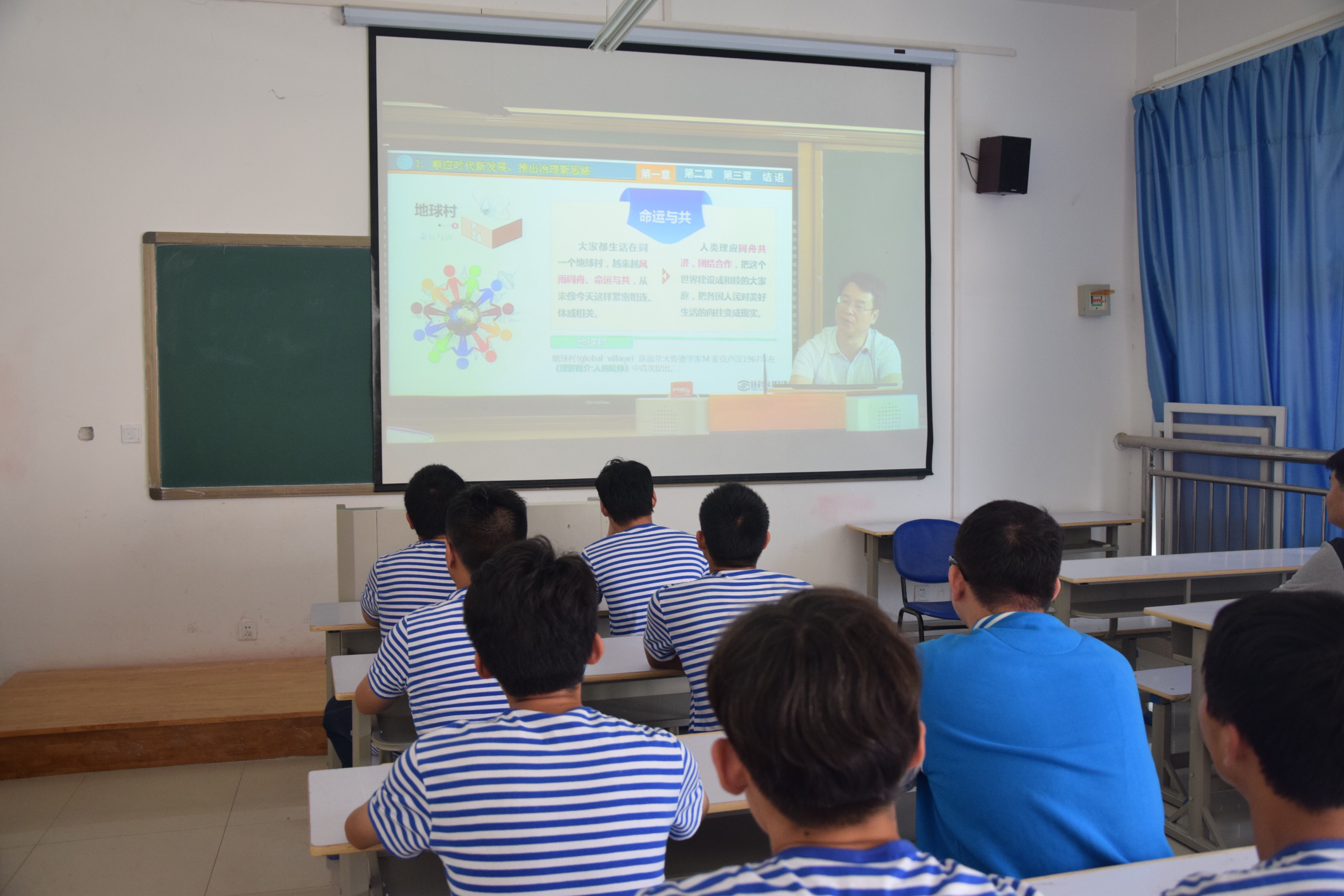 6月19日下午3点,国际教育(欧亚交通)学院组织17级部分班级于8号楼指定教室开展形势与政策班会,班会以视频的方式向同学们讲述“携手共建人类命运共同体”,向同学们进行思想道德教育。