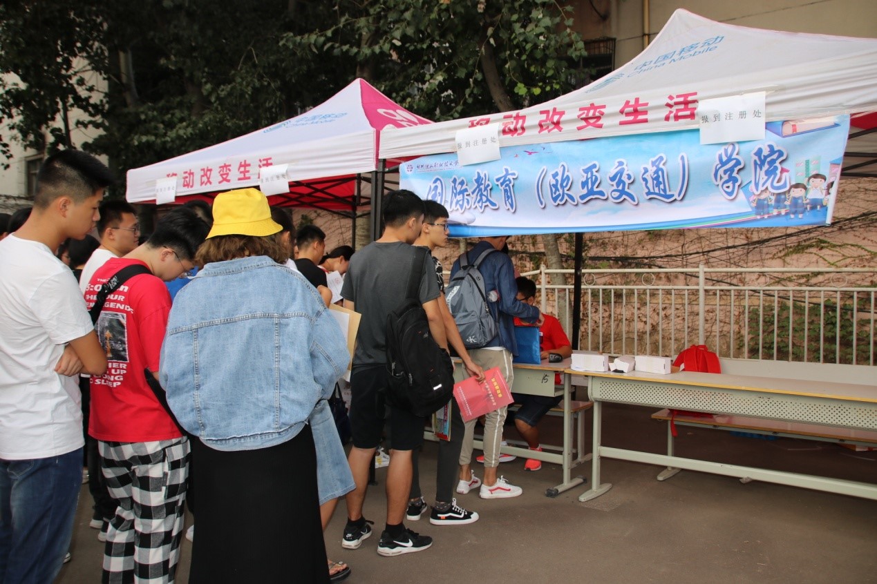踏着晨晖,前程路校区团学会负责迎新的同学们早早地来到了幸福路校区迎新指定地点,将迎新场地和物品准备到位,并各司其职。上午七点整,幸福路校区国教(欧亚)学院迎来了第一批来报到的新生,在学姐的指引下,有序完成信息采集报名。