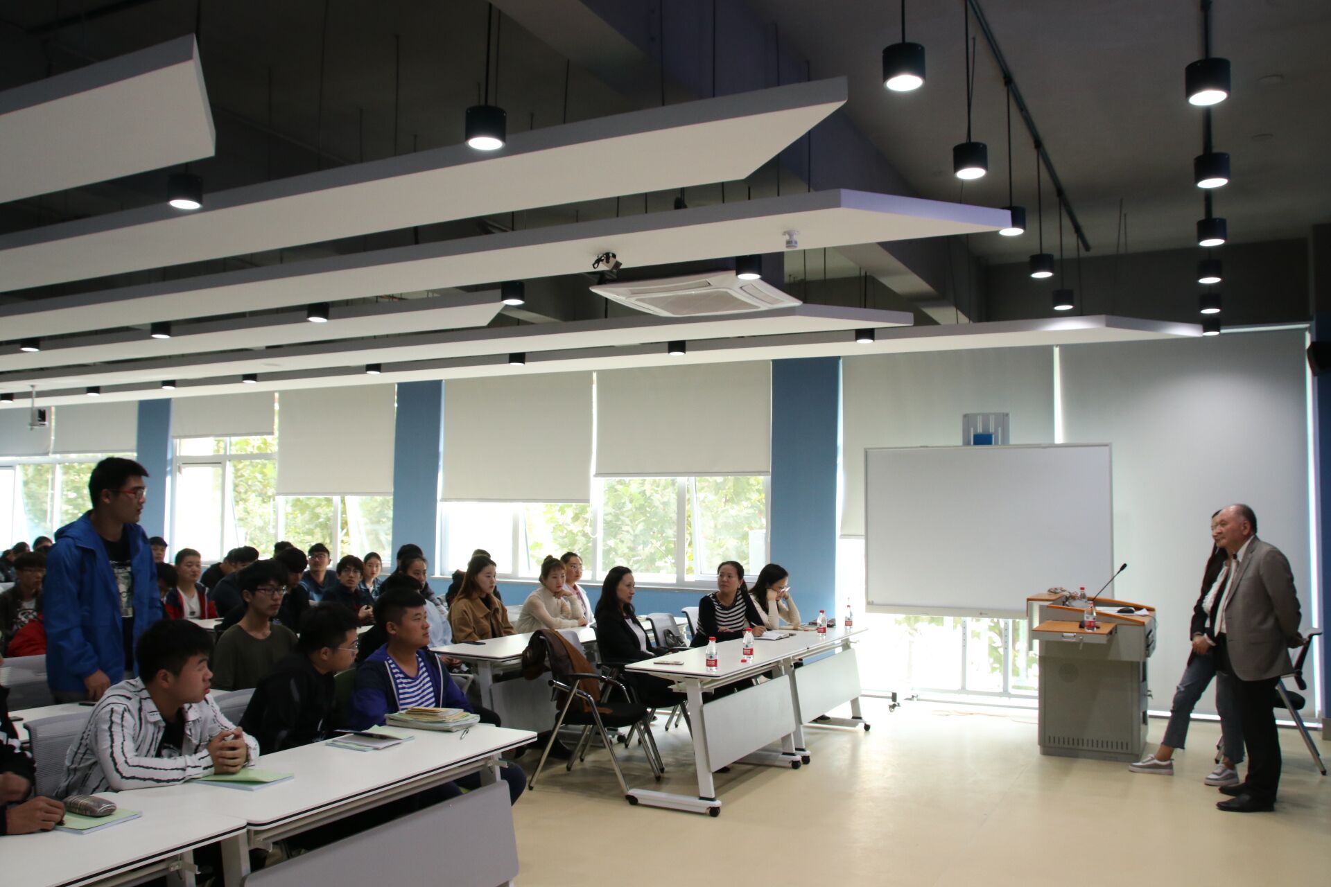 10月23日下午2点50分,国际教育(欧亚交通)学院特邀来自俄罗斯国立交通大学校领导格拉斯科夫,于7211教室开展了“俄罗斯国立交通大学”留学宣讲会。与我院学子分享俄罗斯国立交通大学的历史、环境、师资、文化等。国际教育(欧亚交通)学院院长徐坚、国际教育(欧亚交通)学院主任张敏、辅导员老师张荣凡、外籍教师АЛЁНА及17级有留俄意向的各位同学们参加了本次宣讲会。