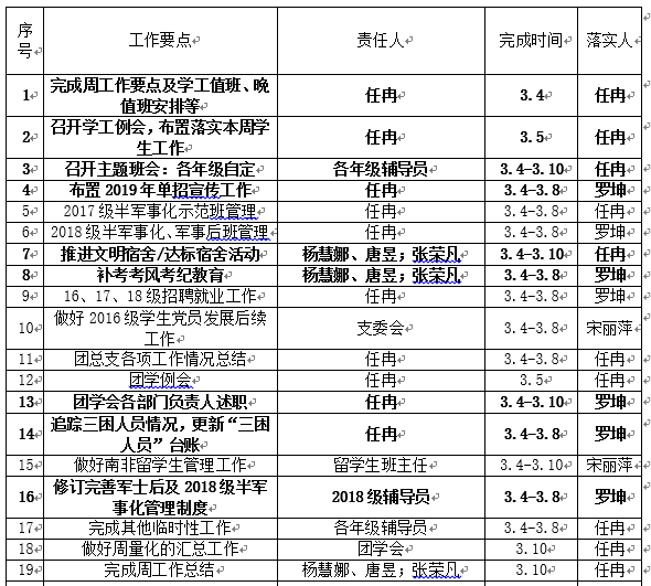 国际教育(欧亚交通)学院2018-2019学年第二学期学生工作第二周工作要点