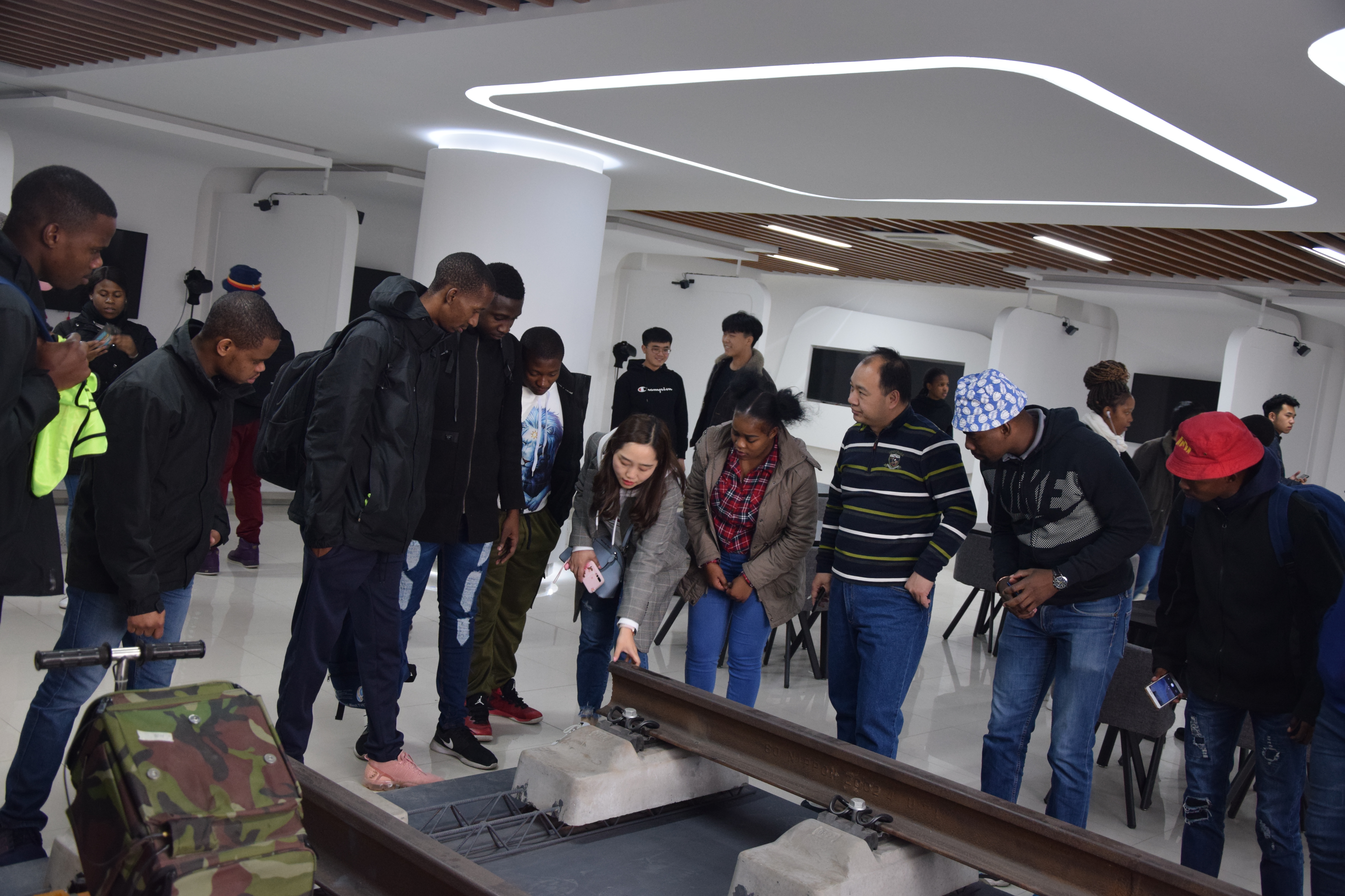 本次参观是南非国际留学生初遇前程路校区,我系领导尤为重视,在曹书记的带领下,南非国际留学生分别参观了铁龙广场、6号楼铁道工程学院实训教室、文化长廊、列车书吧等学校具代表性地标。