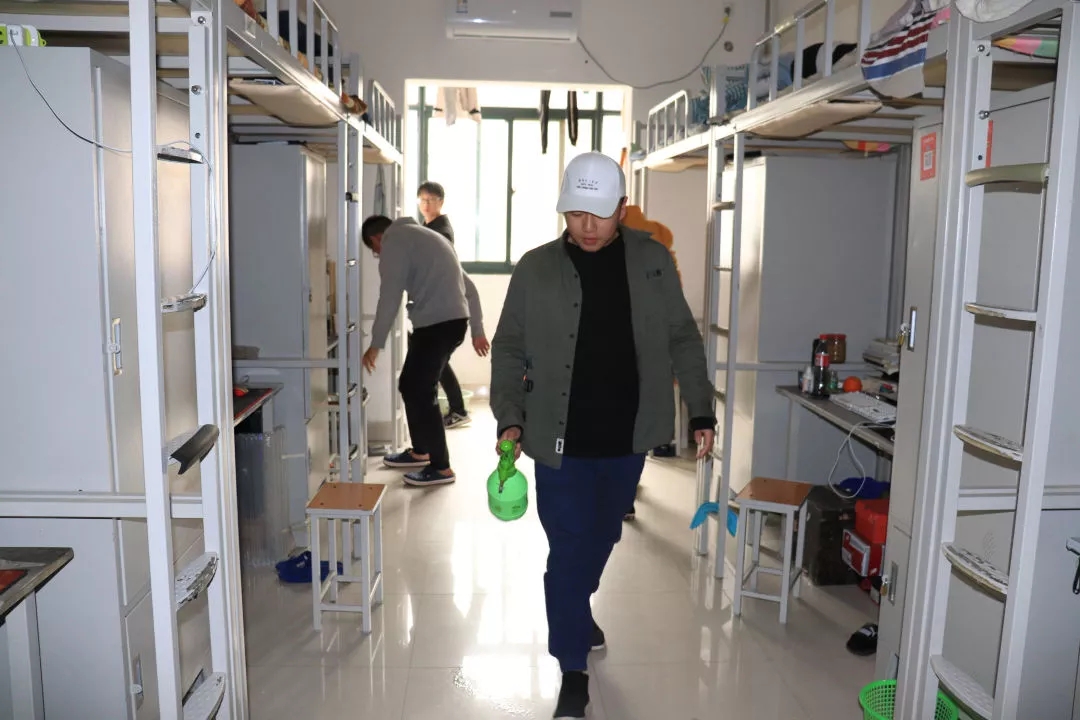 在清扫过程中,对于宿舍环境集中整治,并对宿舍进行消毒,达到宿舍内物品摆放井然有序,地面干净无垃圾,使各个卫生死角均被清除。引起同学们对宿舍卫生的重视,使同学们将保持宿舍卫生成为习惯,展现国教(欧亚)学院学子的真正良好的精神风貌,进一步推进学风建设。