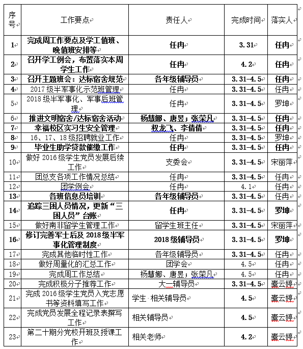 国际教育(欧亚交通)学院2018-2019学年第二学期学生工作第六周工作要点
