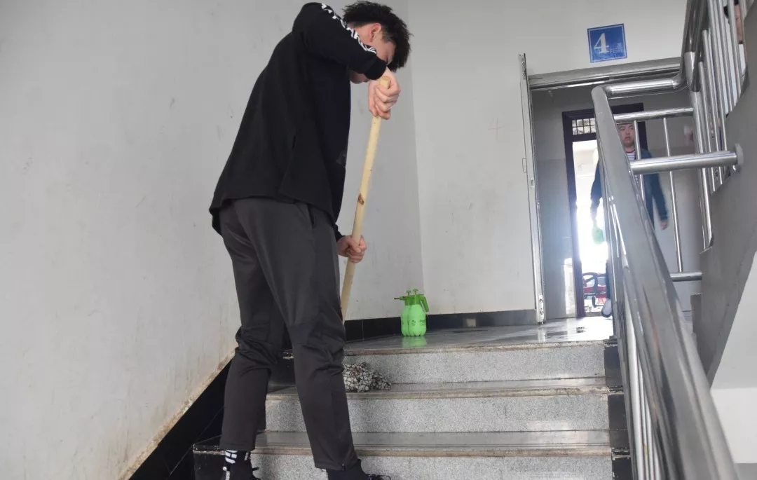 在清扫过程中,同学们对于宿舍、楼道、窗户、阳台等进行全面、深度清理,宿管中心成员于下午13:00其进行消毒。达到宿舍内务物品摆放整齐,地面清洁无垃圾的预期要求,各个卫生死角均被清除。