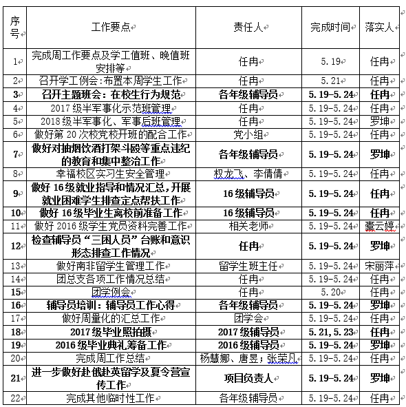 国际教育(欧亚交通)学院2018-2019学年第二学期学生工作第十三周工作要点