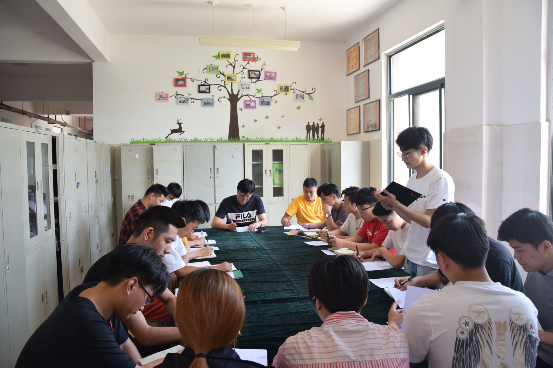 2019年9月17日下午12:30。国际教育(欧亚交通)学院学工办主任任冉,于三楼辅导班东侧办公桌召开团学会干部例会,主席团成员及各部门部长参加本次会议。