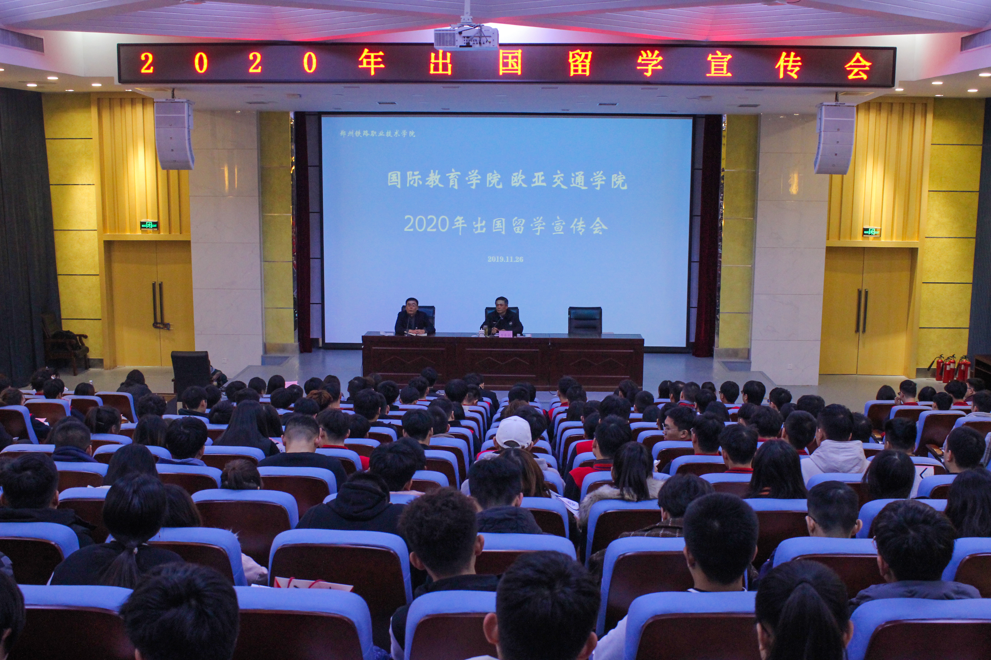 2019年11月26日下午2点,国际教育(欧亚交通)学院“不忘初心、牢记使命”主题报告会暨国际教育(欧亚交通)学院“2020年出国留学宣传会”于新校区7号楼第二报告厅举行。