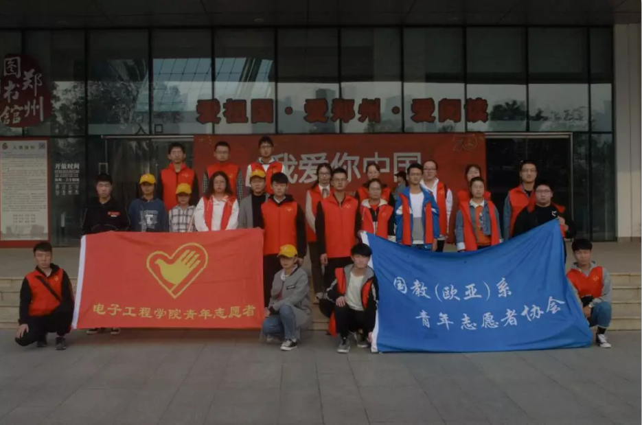 119日上午9 ,国际教育(欧亚交通)学院青年志愿者协会的志愿者们与电子学院的志愿者们应征号召一起来到了郑州市图书馆,一起合作进行志愿服务活动。