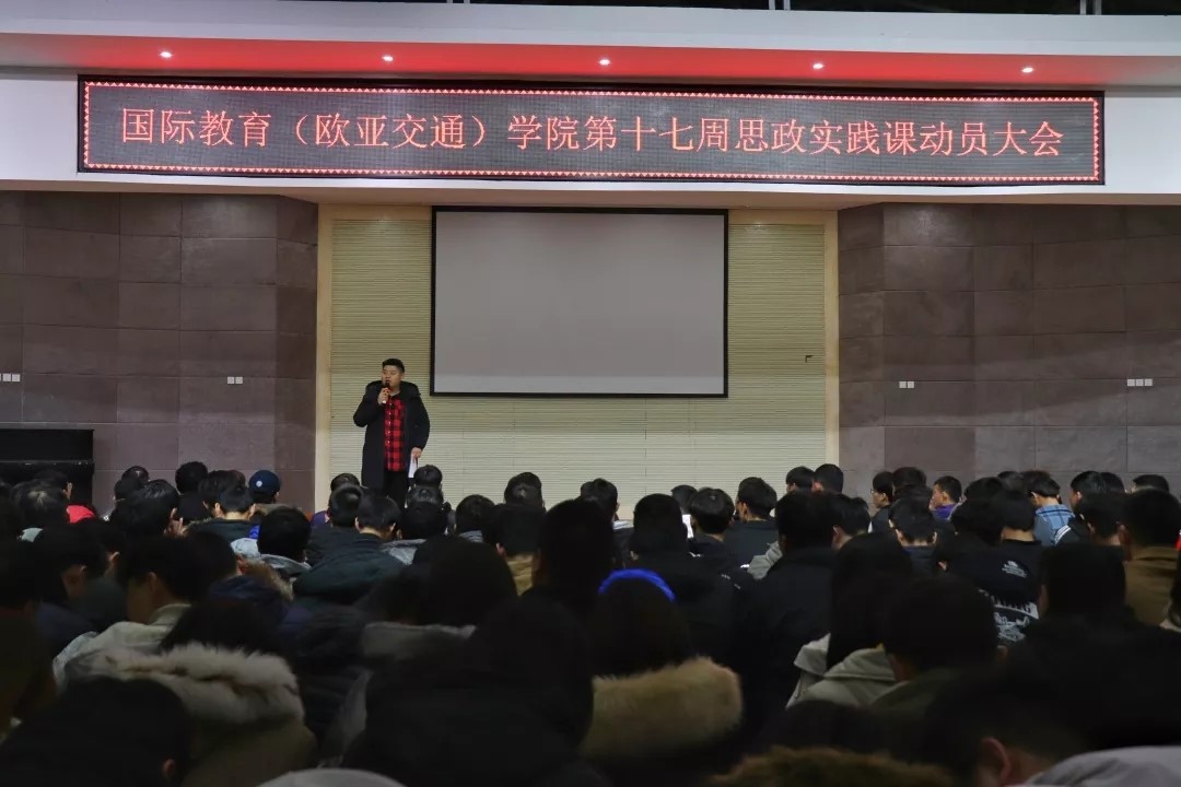 12月20日12:10,国际教育(欧亚交通)学院于大学生活动中心开展第十七周思政实践课动员大会,本次会议由系劳动实践分队与系自律委员会主席团联合组织,18级思政实践课班级参加。